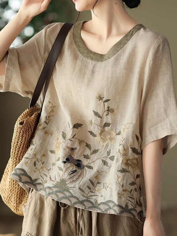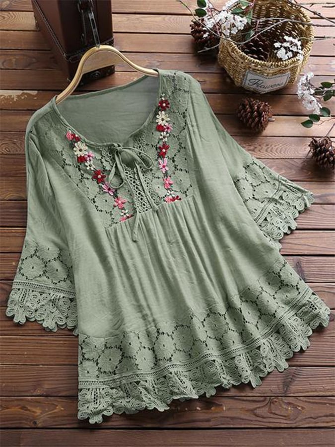 Women's V-Neck Lace Embroidered Shirt